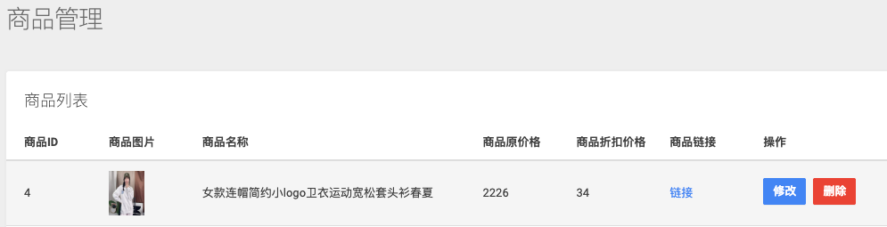 支持新增、编辑、删除商品,上传图片,设置库存、分类等。